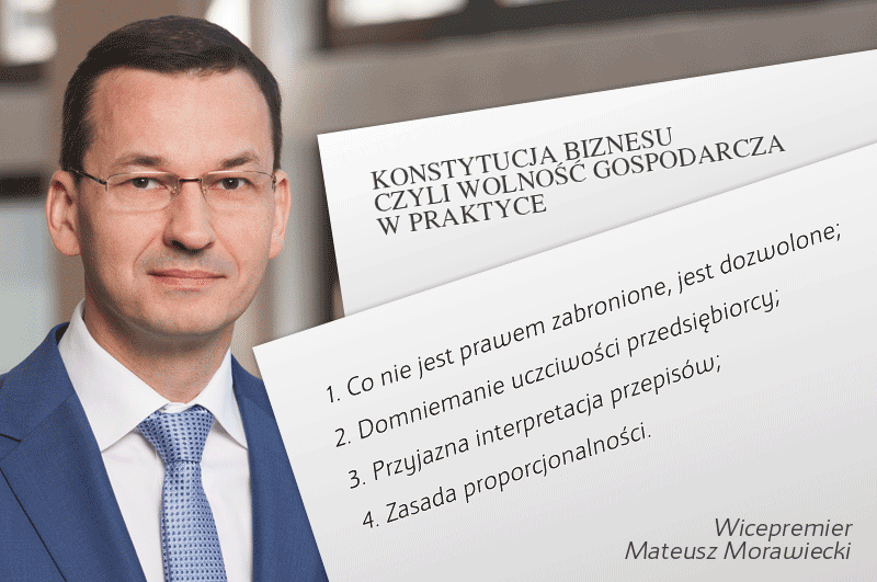Działalność na najmniejszą skalę bez konieczności rejestracji, 6 miesięcy bez składek na ubezpieczenie społeczne dla nowych firm oraz liczne uproszczenia podatkowe – te i wiele innych rozwiązań zawiera pakiet Konstytucji Biznesu, którą 18 listopada przedstawił wicepremier Mateusz Morawiecki. Sercem pakietu jest prowolnościowa ustawa Prawo Przedsiębiorców, która na nowo zdefiniuje relacje biznesu z administracją.